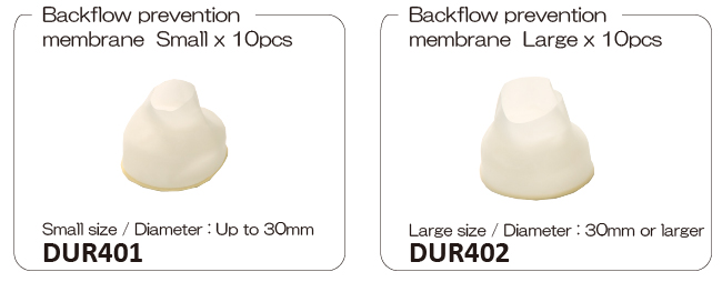 One A size (DUR401) and one B size (DUR402) backflow prevention membrane are included with each package when purchasing a new product.