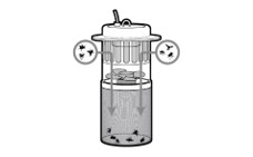 The insects are attracted with a lamp and electrocuted instantly when they come into contact with the high-voltage grid.
