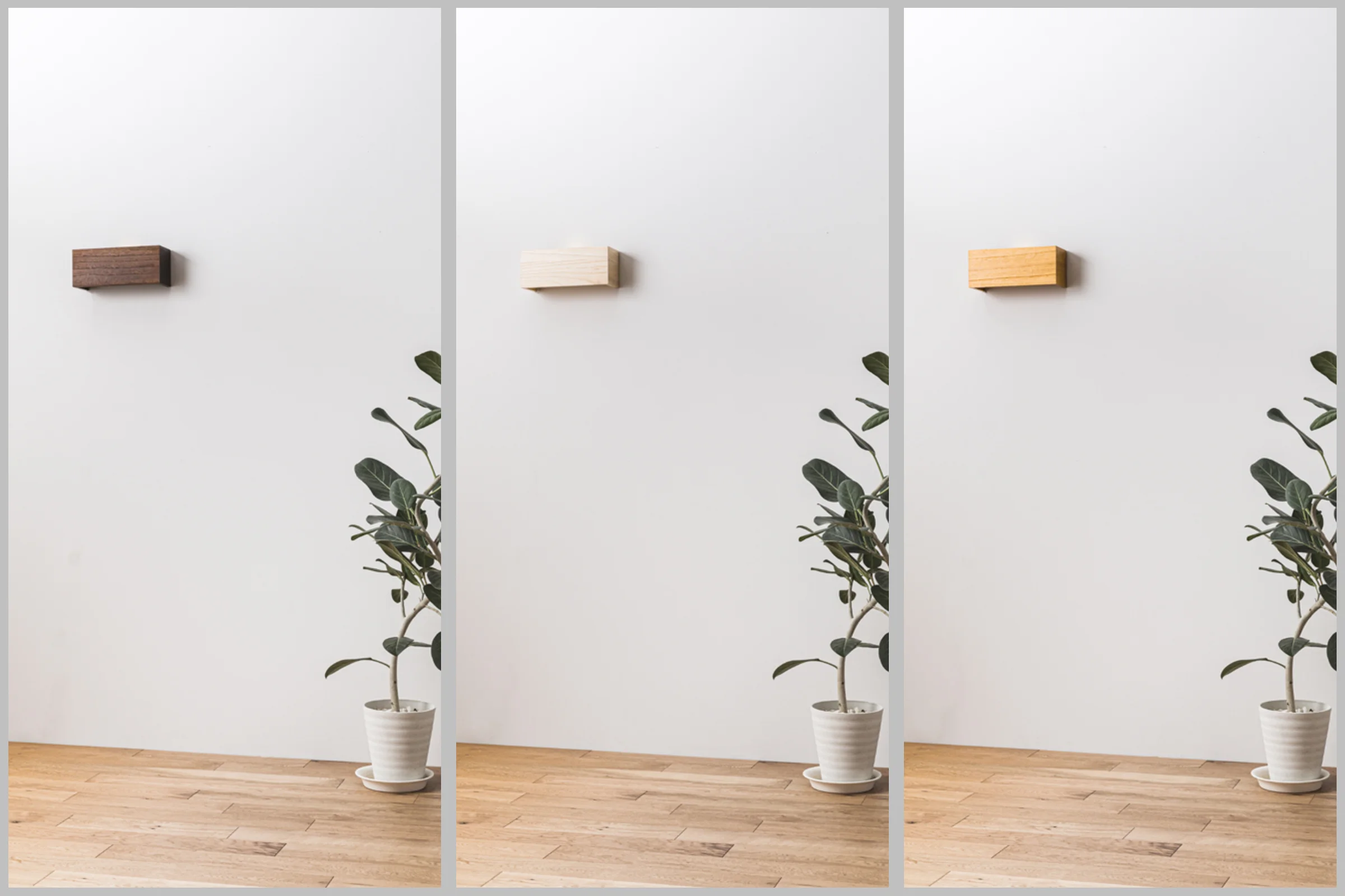 Three colors are available: walnut, warm white, and caramel.